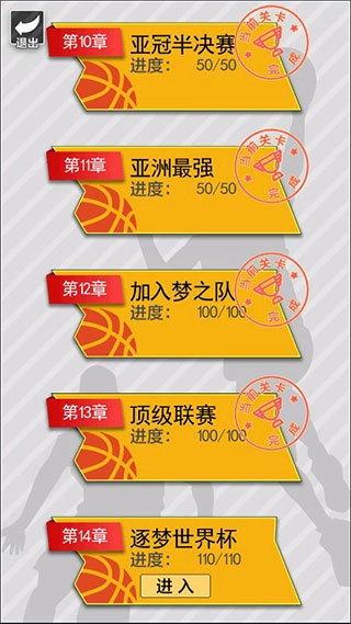 5、点击“去打比赛”后,便进入游戏的关卡界面,其中有十多个关卡等待玩家挑战,成功通关的关卡会显示完成印记。