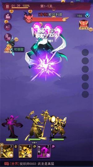 3、选定魂将后,角色会自动展开攻击,成功击败敌人后,将随机掉落玉符与符咒。