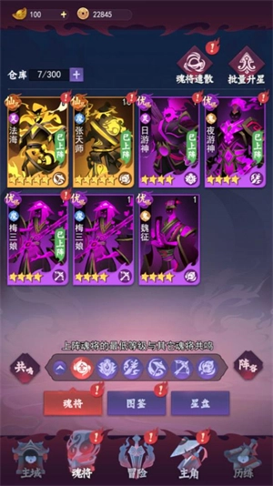 1、你能从众多魂将中挑选上阵角色,不同的阵容搭配将为你带来独特的体验。