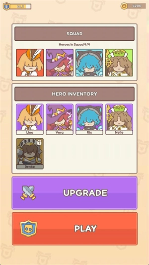 6、于主界面处,点击“upgrade”即可消耗金币来实现升级操作;点击英雄,同样能够对角色展开升级。