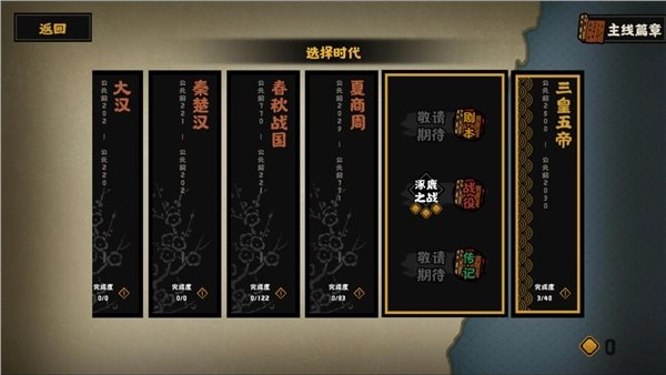 本次游戏版本重点开放三个朝代,分别为:三皇五帝时期、夏商周时期以及春秋战国时期。