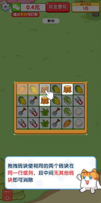 拖拽两个相同的物体,只要它们处于同一行或同一列,并且中间没有障碍物阻挡,就能实现消除效果。