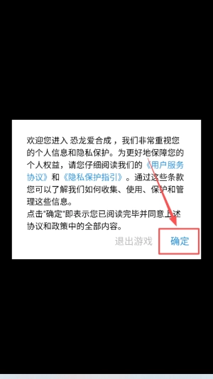 阅读协议:在欢迎您进入恐龙爱合成界面点击确定。