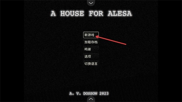 进入游戏后,界面会显示【A-HOUSE-FOR-ALESA】,请优先选择【新游戏】选项来开启游戏流程,暂时不需要进行加载存档、切换语言等操作。