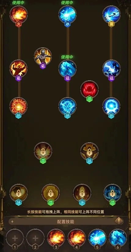 哨塔随等级解锁,共六个位置,可自由搭配,甚至全用同款塔。推荐前期用两火塔一冰塔,放456号位,选冰刺和火墙。