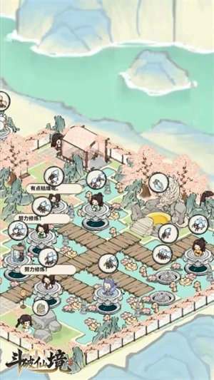 搭建修炼台是我特别钟爱的建造玩法,这种充满生活气息的设计很对我胃口——看着小人在台上修炼,或是在周围跑来跑去都趣味十足,颇有日出而作、日落而息的悠然感。对于喜欢种地和囤积资源的玩家来说,这简直是福音:看广告就能解锁类似“无敌版”的体验,攒够灵石后,既能按照自己的心意布置宗门装饰,还能抽取弟子皮肤给他们换装,一个个都软萌可爱,加上弟子们在宗门里四处溜达的模样,别提多生动了。游戏的可玩性也很高,既能推进剧情、打怪修炼,要是能增加一些弟子的个人小记录就更好了,比如结契时的心情变化、外出打怪的经历,或是在哨阁值班时遇到的妖怪趣事之类的细节,肯定会让内容更丰富。