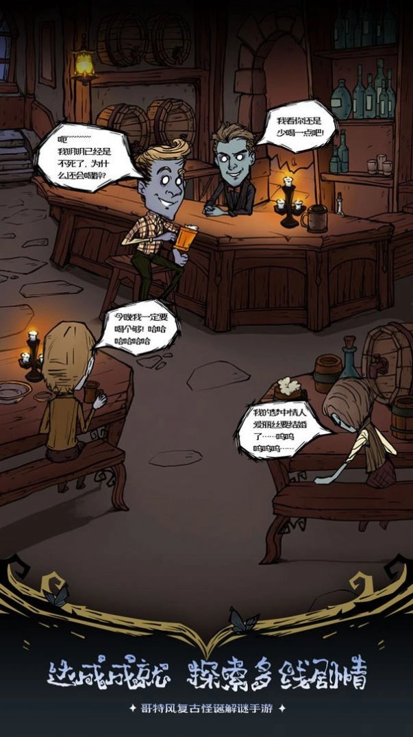 2、游戏打造克苏鲁风格画面,融入诙谐幽默的新娘主题剧情,玩家将与新娘爱丽丝一同展开探索,逐步解开层层关卡背后的故事。