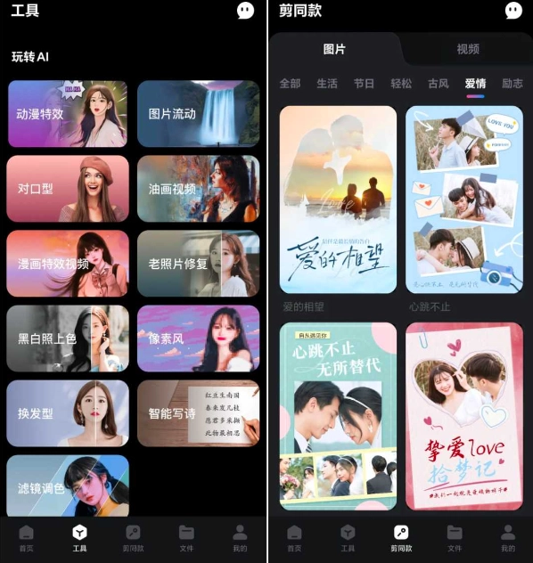 除此之外还有很多非常实用的工具比如:老照片修复、像素风、抠图、黑白上色等工具和剪同款。