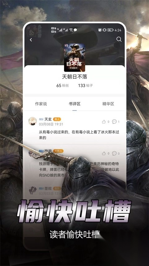 --打造阅读社区,用户能在此结交志同道合的朋友,畅快交流小说。