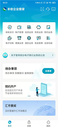1、专为企业打造的手机银行软件,安全靠谱,企业可以使用丰收企业管家在线办事。
