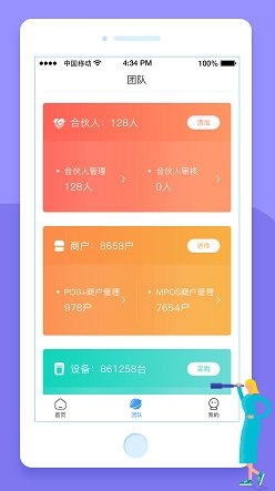 2、商户能够自行添加合伙人,迅速组建属于自己的团队。