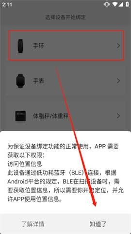 3、寻找到手环功能,只要手环处于蓝牙有效范围内,手环便会震动,同时提示灯光闪烁。