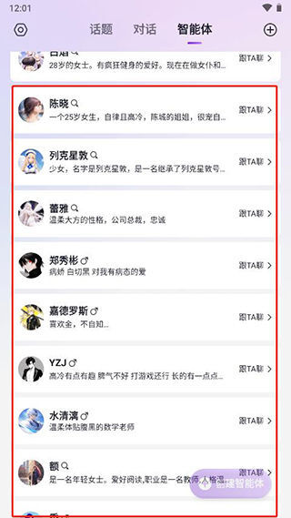 如对某个智能体感兴趣,点击跟TA聊以开始聊天。