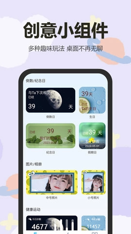 万能小组件盒子是深圳市辰未网络科技有限公司打造的品类丰富的小组件资源库,涵盖倒数日、今日步数、系统信息等多种类型。用户既能获取并定制各类小组件以契合个性化需求,还能便捷地对自己的小组件进行编辑与个性化设置。