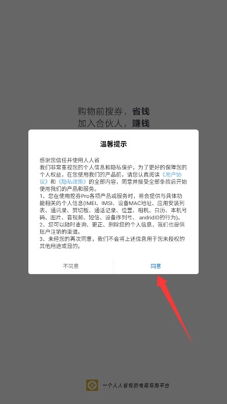 1、初次使用需阅读平台服务条款与隐私政策,确认后点击同意按钮进入应用。