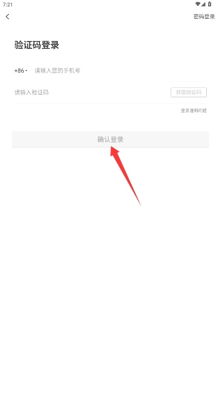 2、在登录页面填写手机号码,勾选用户协议后获取并输入验证码,点击确认登录进入。