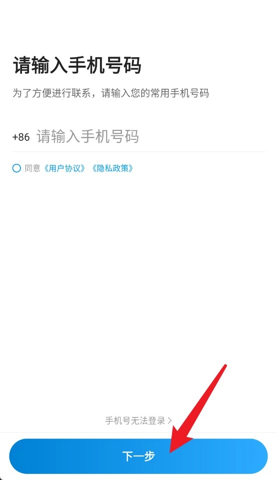1、输入常用手机号码,勾选相关协议后点击“下一步”,以此完成初始登录验证步骤。