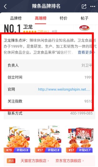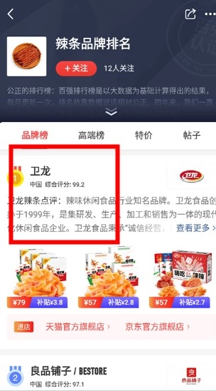 2、选择具体分类:进入食品生鲜品类页面后,点击辣条选项,即可查看对应品牌排行列表;