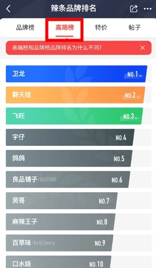 4、查看高端榜:切换至高端榜页面,可获取该领域整体品牌排行情况;