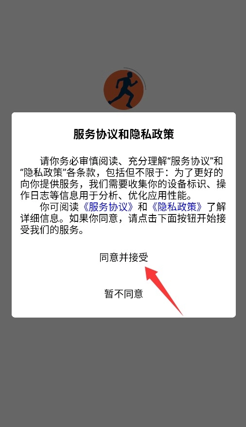 1、首次启动会弹出服务协议和隐私政策,需点击同意后方可进入应用主界面。