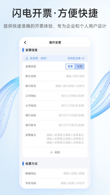 自定义收款方信息与付款方式:电票精灵免税票能够支持自定义收款方信息,还提供多种付款方式,大大提升了发票开具的灵活性与效率。
