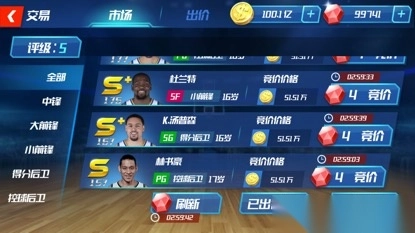 球员交易:玩家可以在球员交易界面中通过和其他玩家竞价的方式获得你心仪的球员。