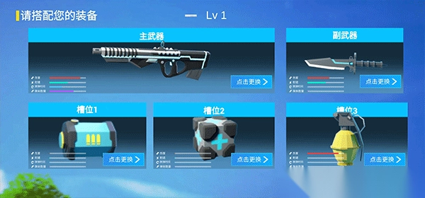 2、在游戏开始之前我们需要搭配自己的武器,选择厉害的主武器和副武器,选择差不多了之后进入战斗;