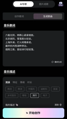 2.一键创作完整的作品,从旋律到编曲再到歌词,简化了创作过程