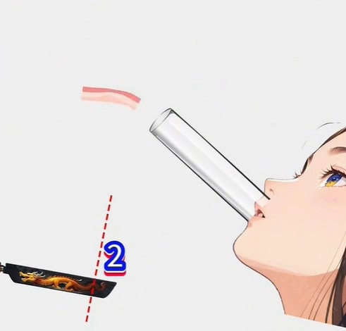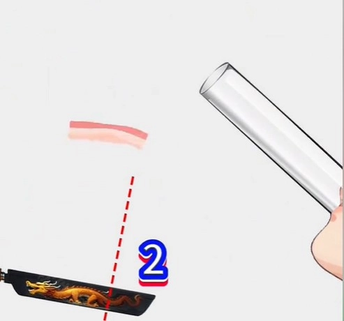 2、这一关的窍门在于管口的上边缘和下边缘可以支撑住培根。
