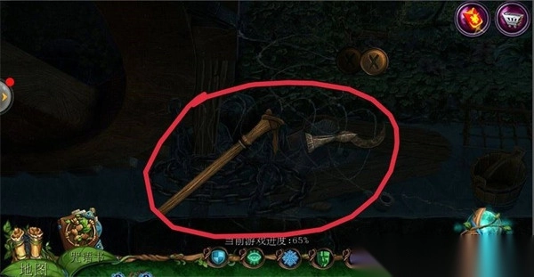 8、点击左侧的齿轮,使用【钳子】将铁丝剪断;清除所有卡住轮子的废弃物;首先找寻【锯子】,把木棍锯掉;接着找到【钩子】,从树叶里钩出【锥子】;将【锥子】放置在石头堆中,最后用【锤子】敲打,移开石堆;完成游戏,获取【起重器】。