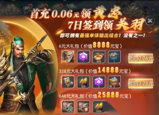 ★首充豪礼,首充0.06元就能获得神将黄忠!
