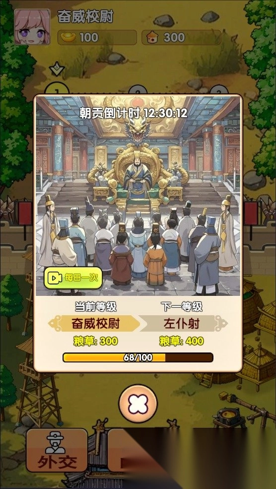 3. 每日一次的朝贡可以获得粮草。