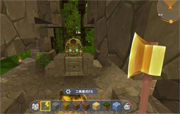 3、在找到神庙之后,如果发现了上图这样的头像建筑,那么玩家就可以获得机会,进入大神庙了。当然要进入大神庙,光找到小神庙是不够的,还需要多砍树!