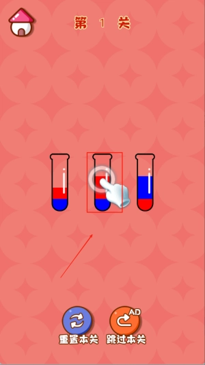 1、点击选中装有液体的试管,再次点击另一个空管或相同颜色液体上方的试管,系统会自动完成倾倒操作直至满层为止。