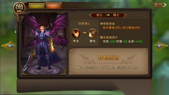 此外,每个职业还有转职的机会。当等级到达一定的级别时,就可以进行转职了,转职的特殊之处在于强化初始技能,变单攻为群攻,还可以提升升级时赠送的属性点。