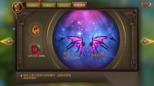 说到暗黑类、奇迹类的游戏,大家一定会想起那威风凛凛的羽翼!在《永恒纪元》中,也有炫酷的翅膀系统,而且根据每个职业的不同,对应的翅膀外形也不一样。炫酷的翅膀可以带来给力的战斗力加成,是许多颜值党的最爱。