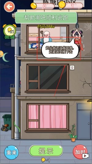 3、进入关卡后需立即制定合理的逃脱计划,例如利用地形优势或道具组合来避开敌人视线,确保哪吒安全撤离。