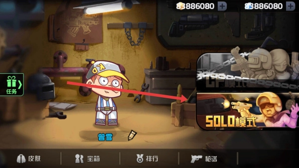1. 在游戏的主界面上,依照指引所指方向,点击右侧的SOLO模式选项,随即进入角色选择界面,从而开启游戏的准备流程。