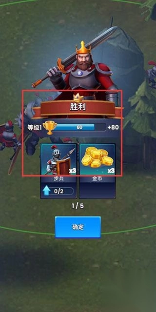 3、当玩家成功赢得战役,屏幕会呈现胜利特效,同时玩家将获取资源奖励,这些资源可用于招募新英雄以及强化兵种。