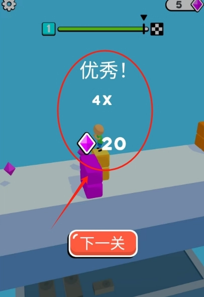4、即时闯关反馈,成功通过障碍触发 “通关喝彩” 音效与星星奖励,失误掉落则重新开始,实时显示剩余方块生命值与关卡进度。