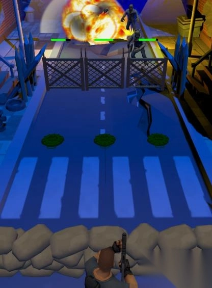 1、选择关卡后,进入不同的城市战场迎战尸潮。 2、使用金币在战前购买武器、投掷物和防御设备。 3、在战斗中自由移动射击,同时合理利用地形和障碍。游戏简评: