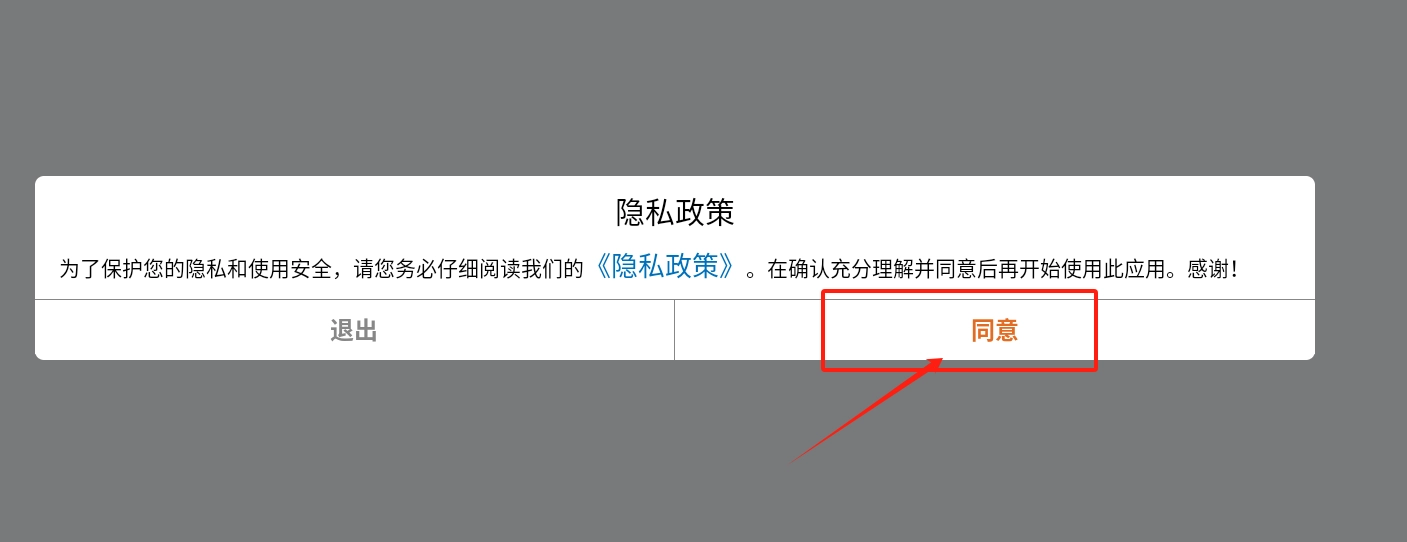 1、下载游戏并打开点击同意。