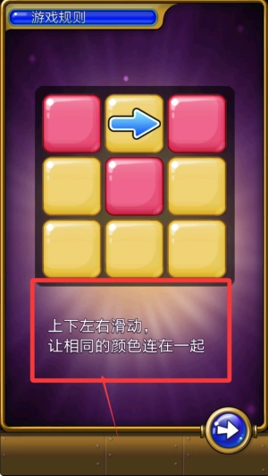 1、基础玩法是通过滑动方块使相同颜色的方块相互连接,当所有同色方块连成完整区域时即可完成关卡目标。