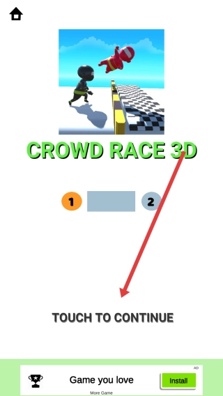 1. 在启动页面,点击【TOUCH - TO - CONTINUE】,即可进入《Crowd - Race - 3D》,开启赛跑攀爬挑战之旅。