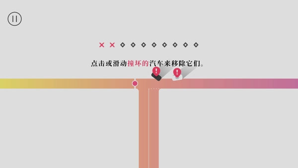 4、如果真的发生事故时,则需要通过点击或滑动破坏的汽车来移除它们。