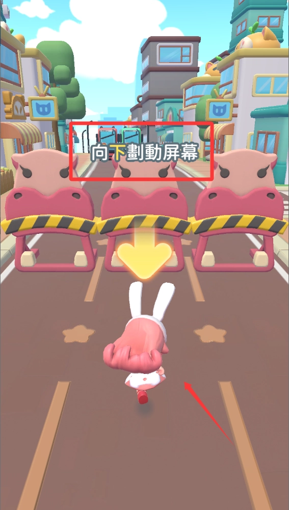 3、遇到全部赛道都不能通过的就玩下滑能钻过去,或者往上滑就能跳过去。