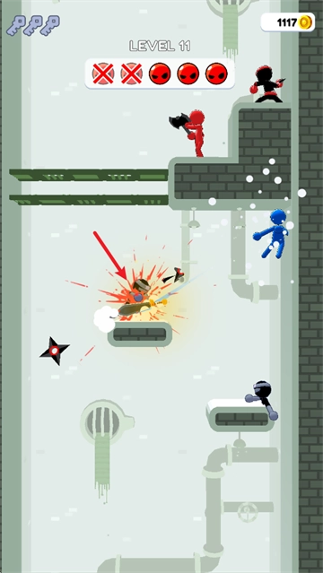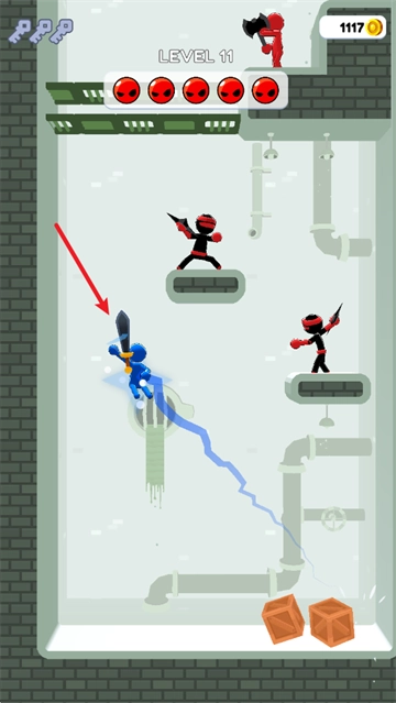 1、当进入游戏之后,通过滑动屏幕,就能把武器投掷出去。
