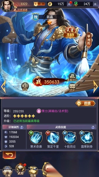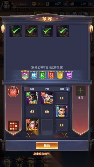 在游戏中,玩家能够查看角色的属性,这些属性包括魏、蜀、吴、神、魔五种,并且还能生成不同的羁绊。