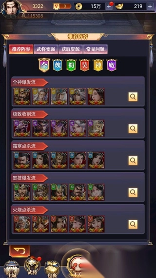 4、提供推荐阵容查看功能,于游戏内能够查看推荐的阵容,并可依据推荐阵容添加武将。