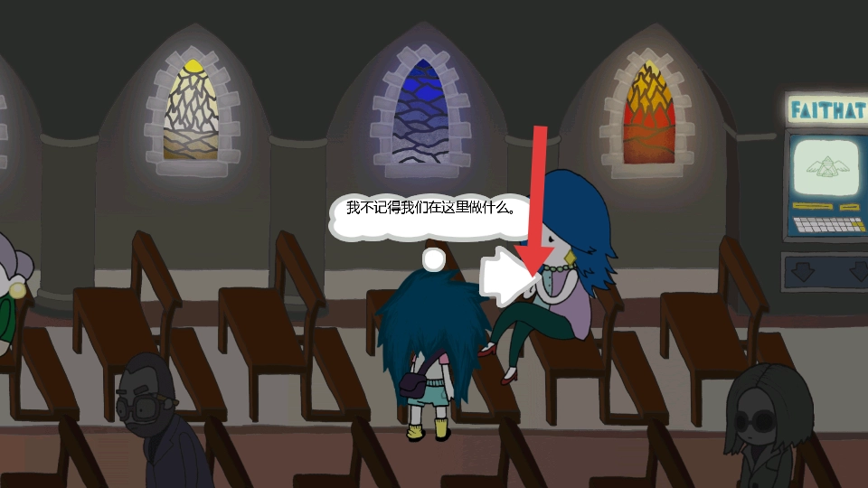 3、教堂探索及剧情推进:踏入教堂后,朝右走到尽头,与他人对话并选择相应选项,从而获取表格;接着向左移步至忏悔室,将表格放入,以此触发剧情。